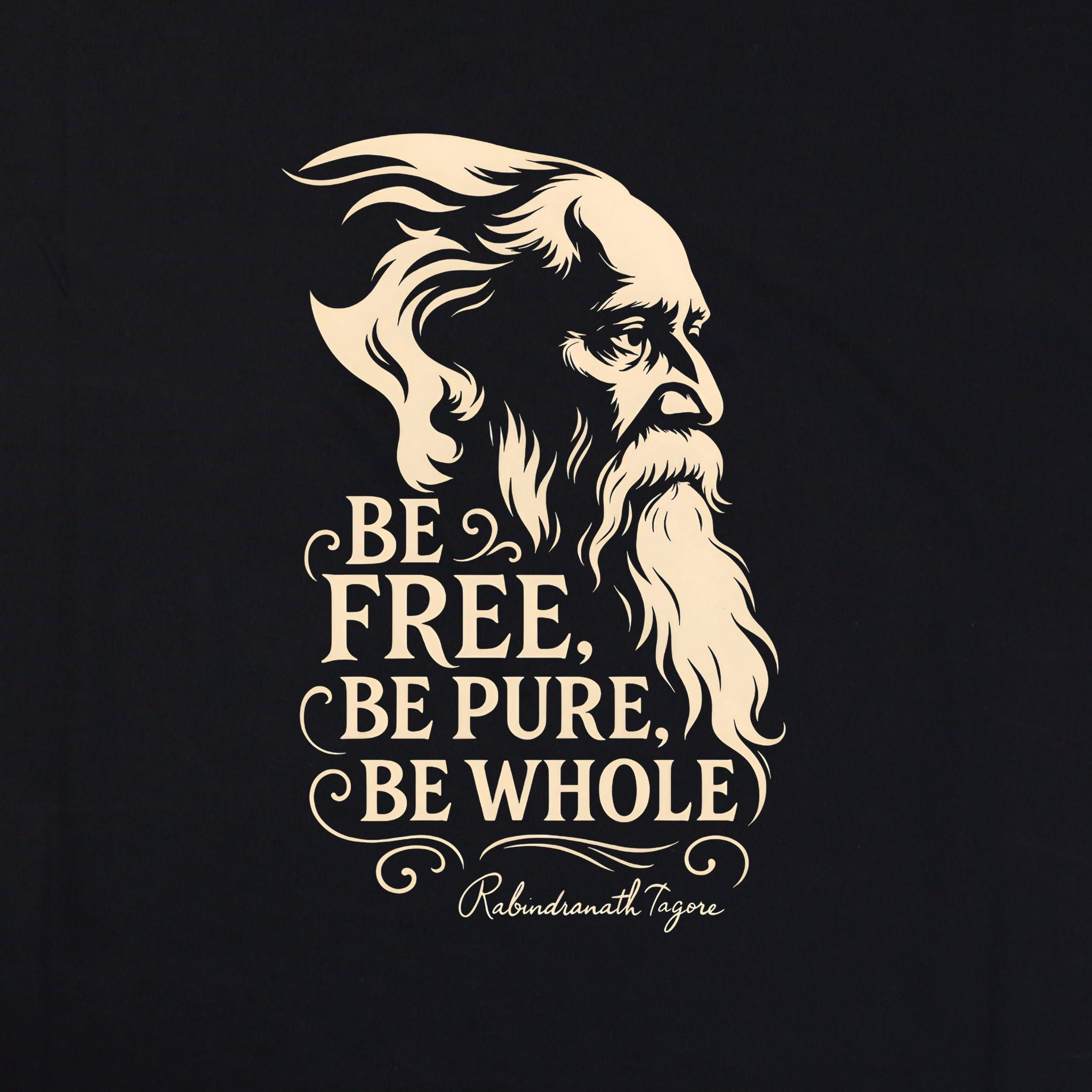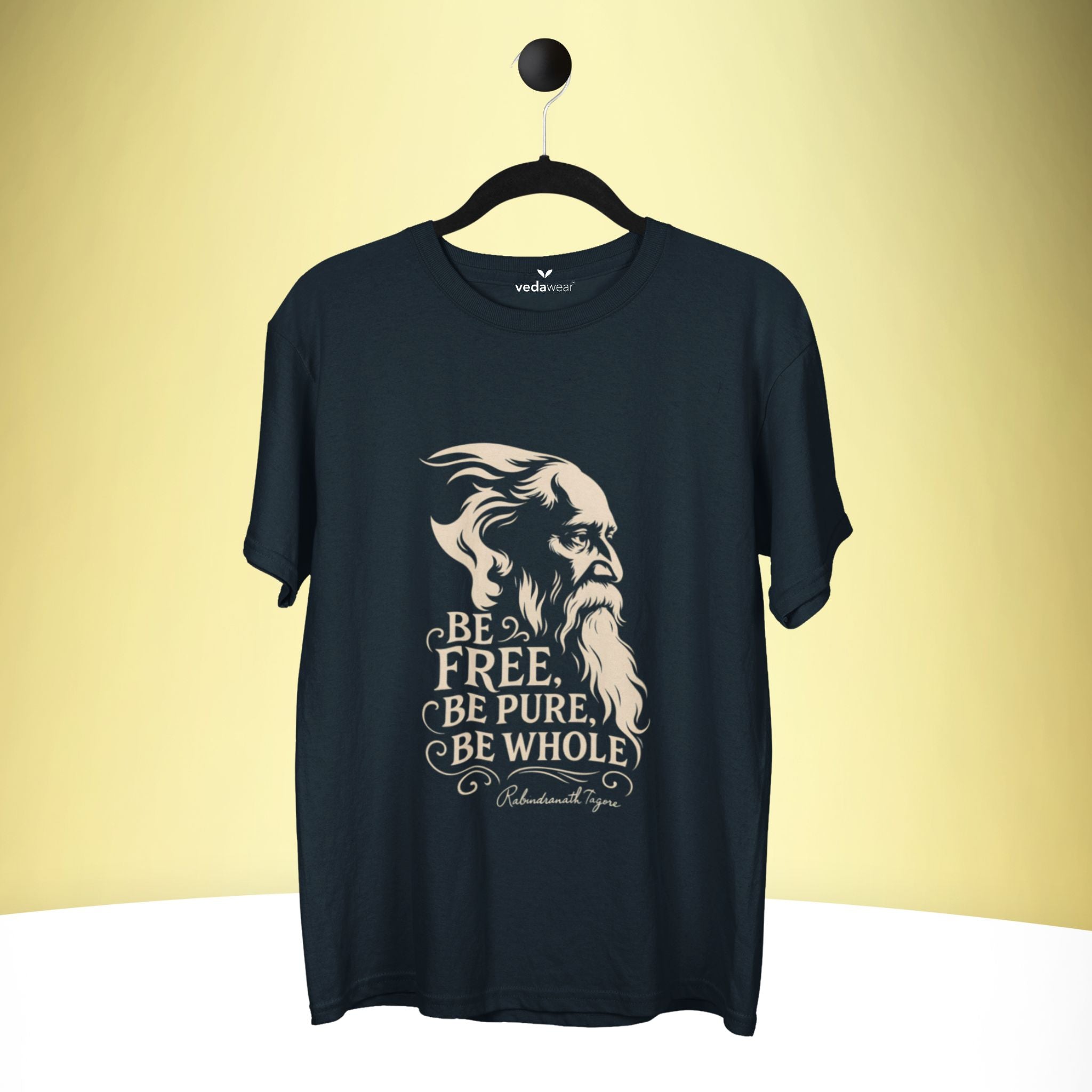 The “Be Free, Be Pure, Be Whole” premium tee by Vedawear draws from the soulful wisdom of Rabindranath Tagore, India’s poet-philosopher.