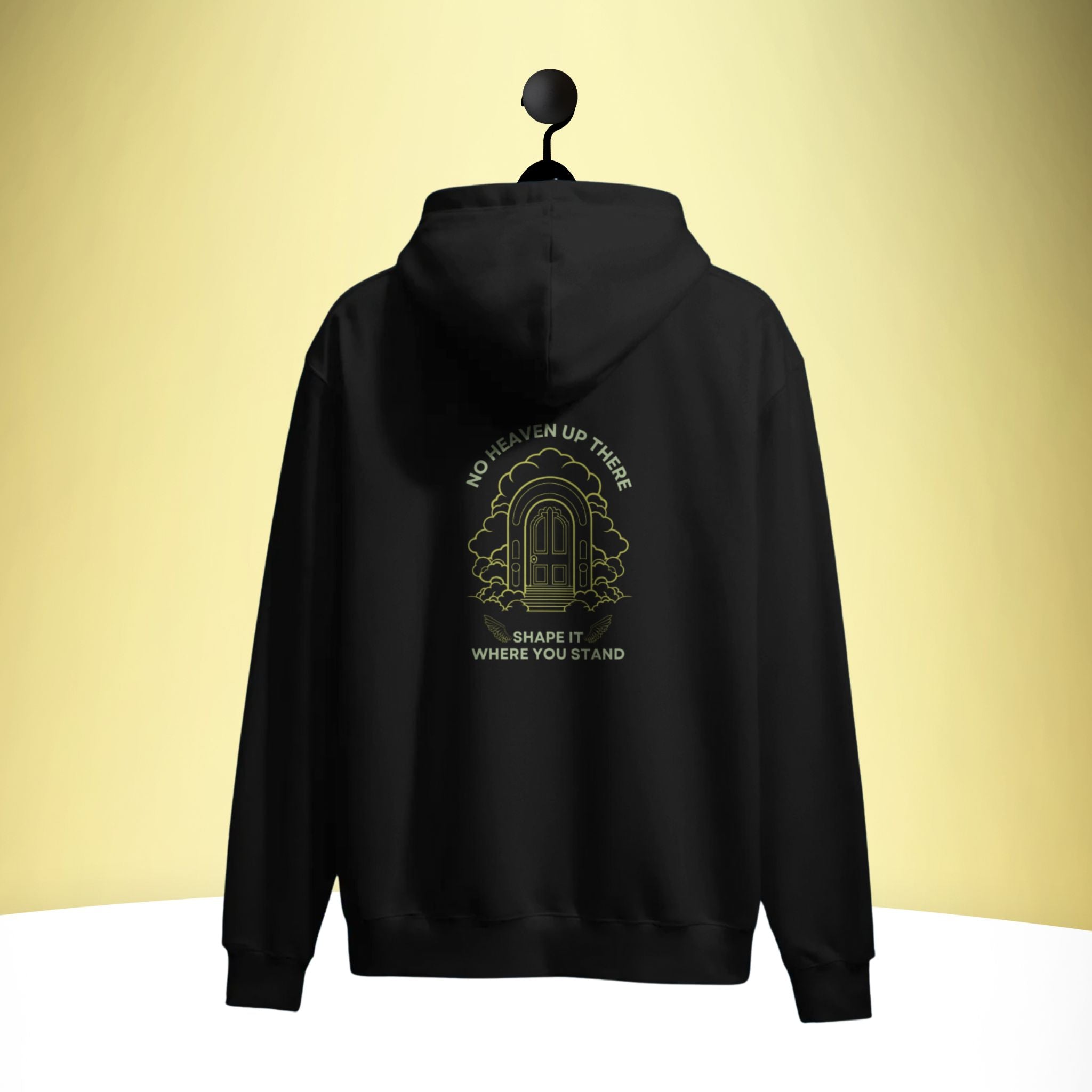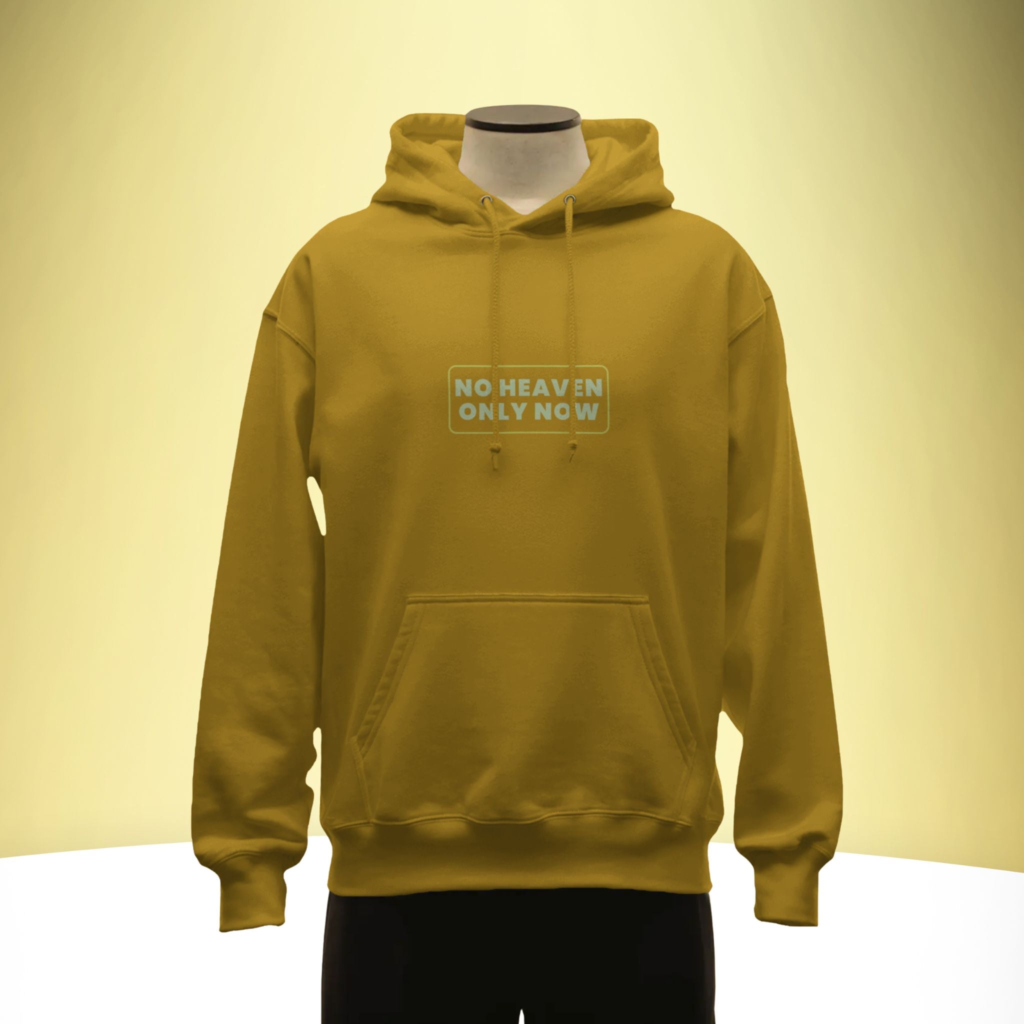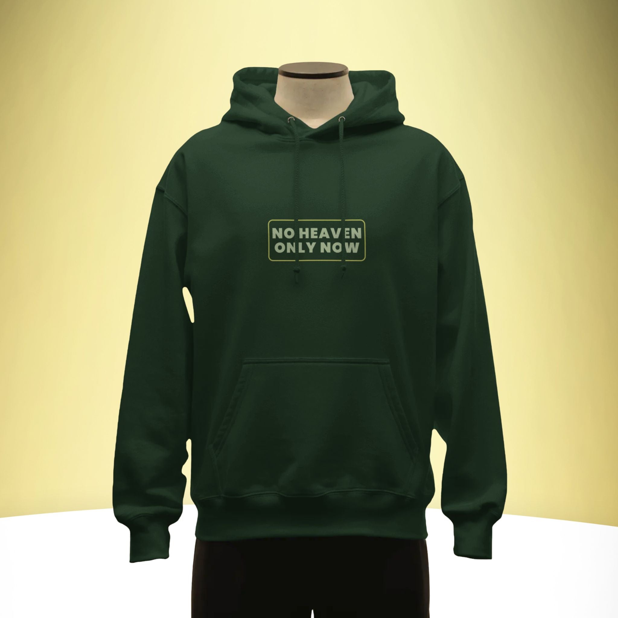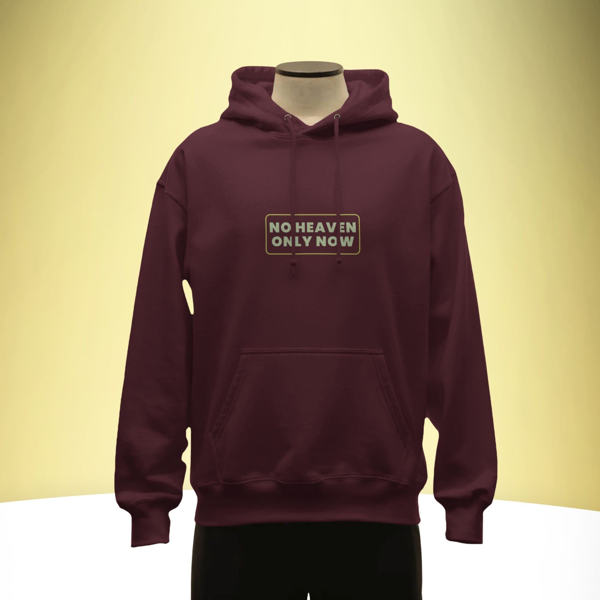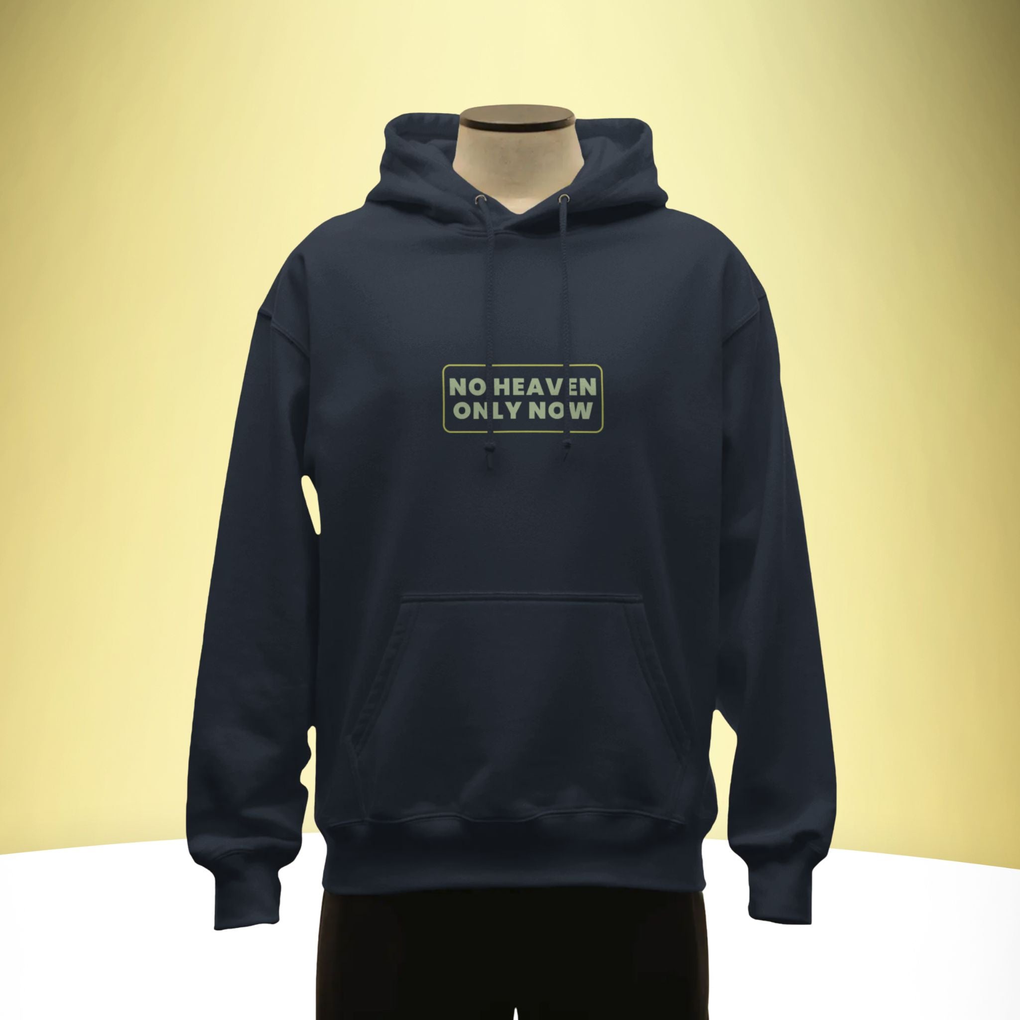 Made with soft cotton fleece, this regular-fit hoodie delivers warm comfort for everyday winter wear. The front message, No Heaven Only Now, keeps you grounded, while the back artwork celebrates clarity and the power of shaping your life in the present moment.