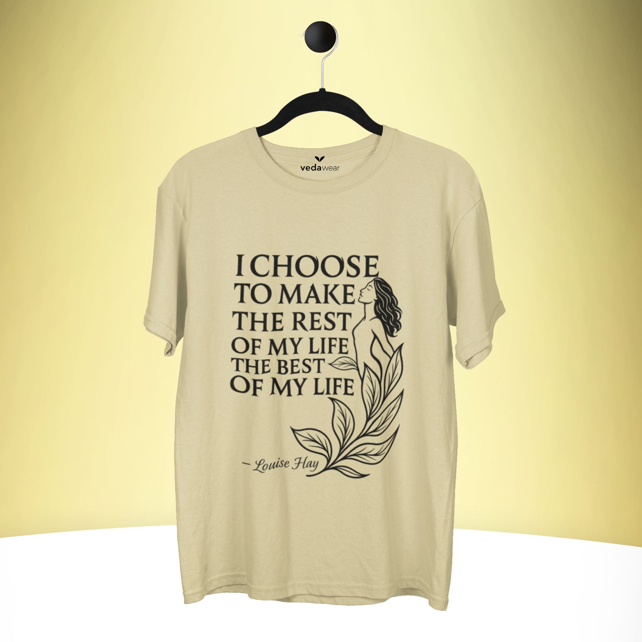 The “Best of My Life” premium tee by Vedawear carries a powerful affirmation from legendary self-healing author Louise Hay: