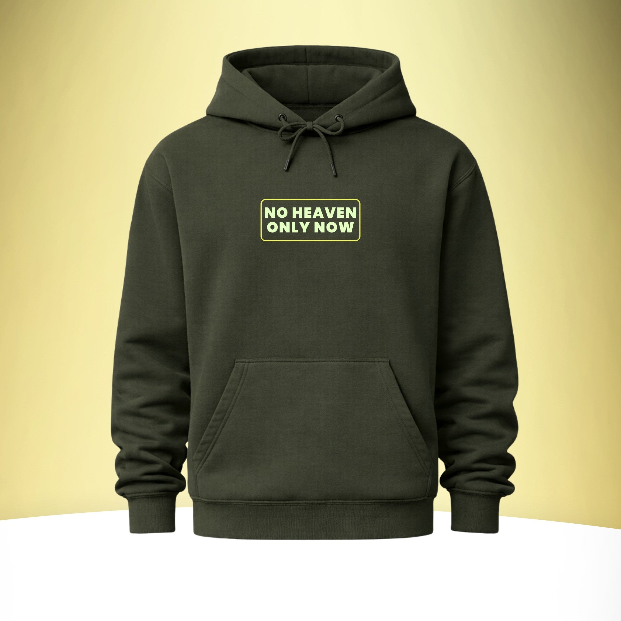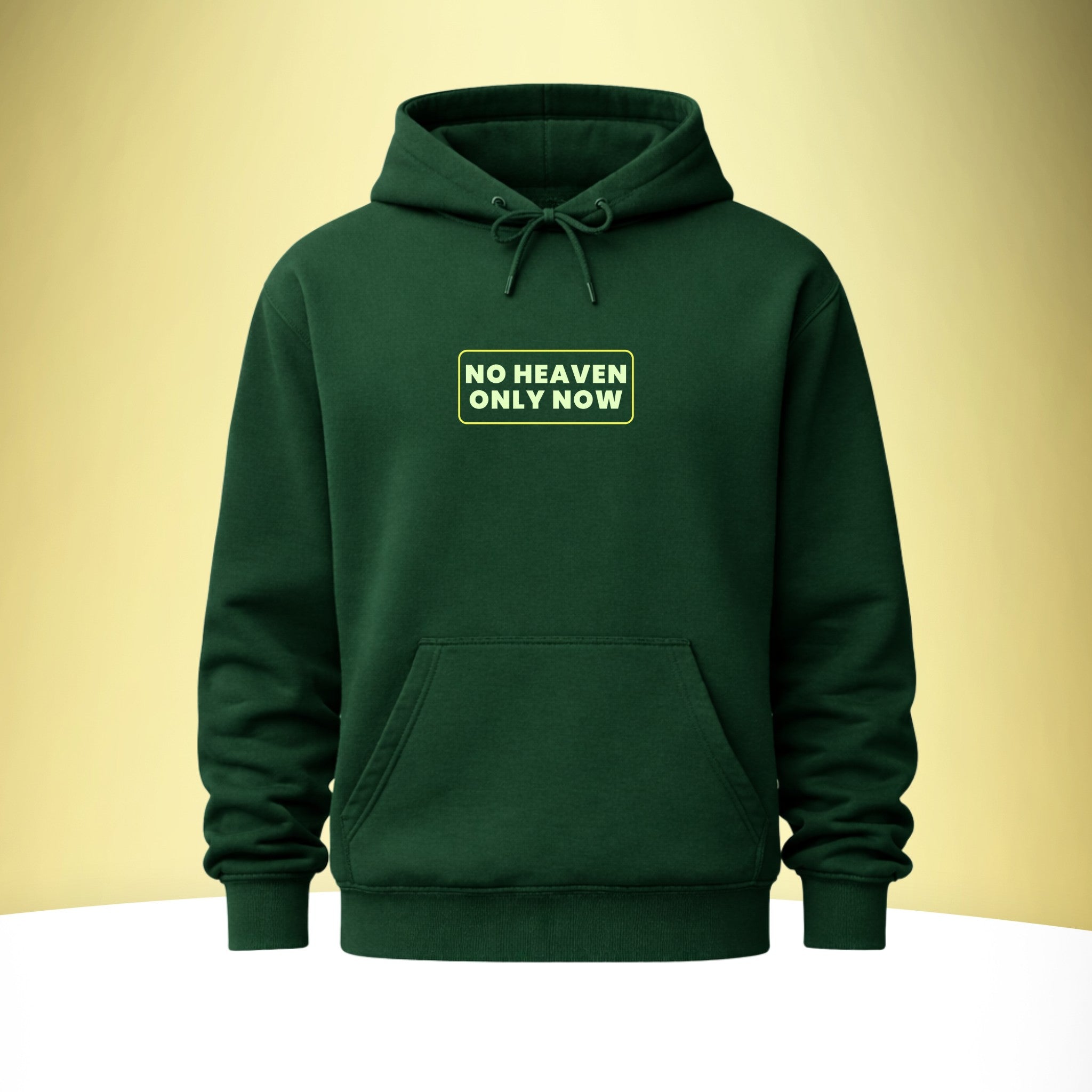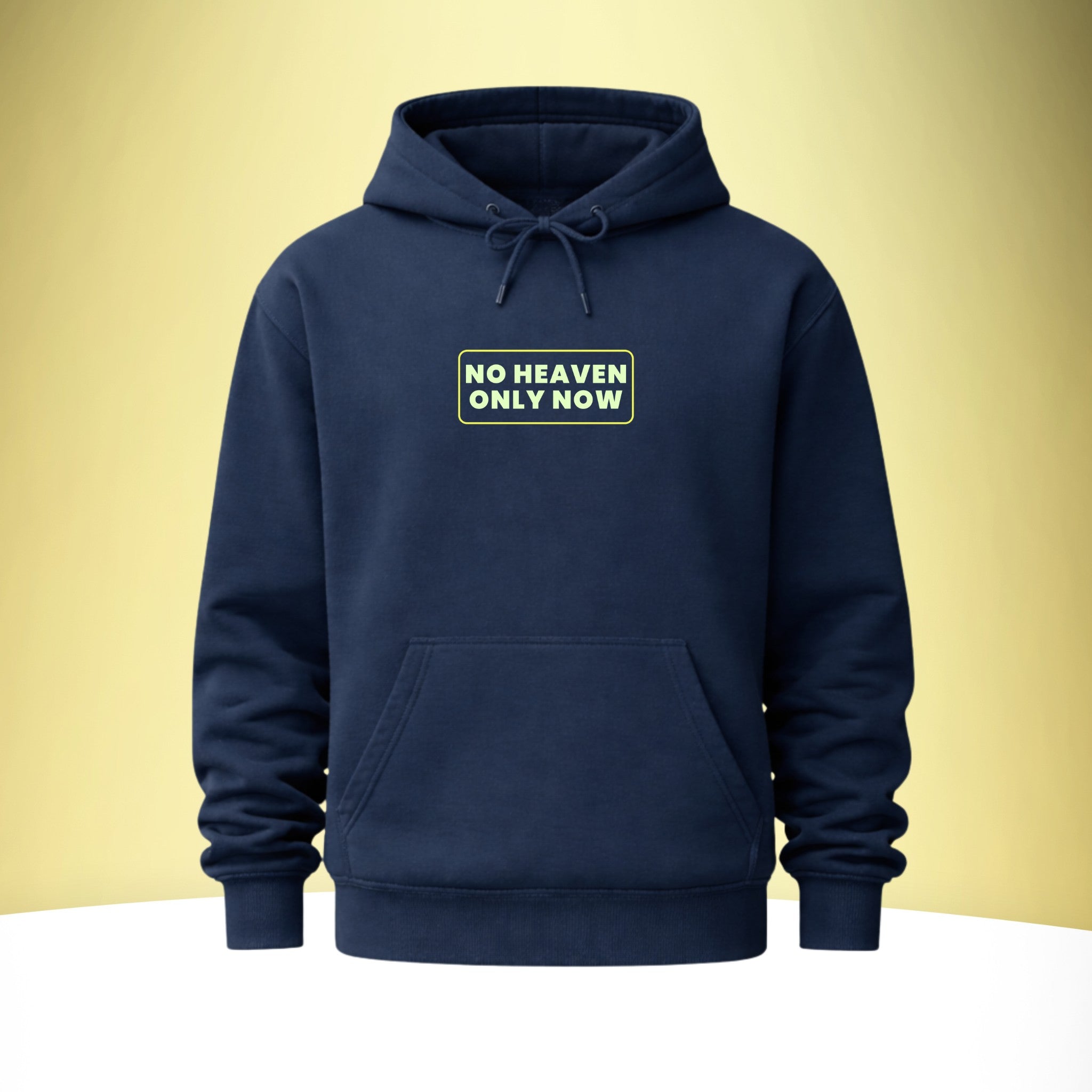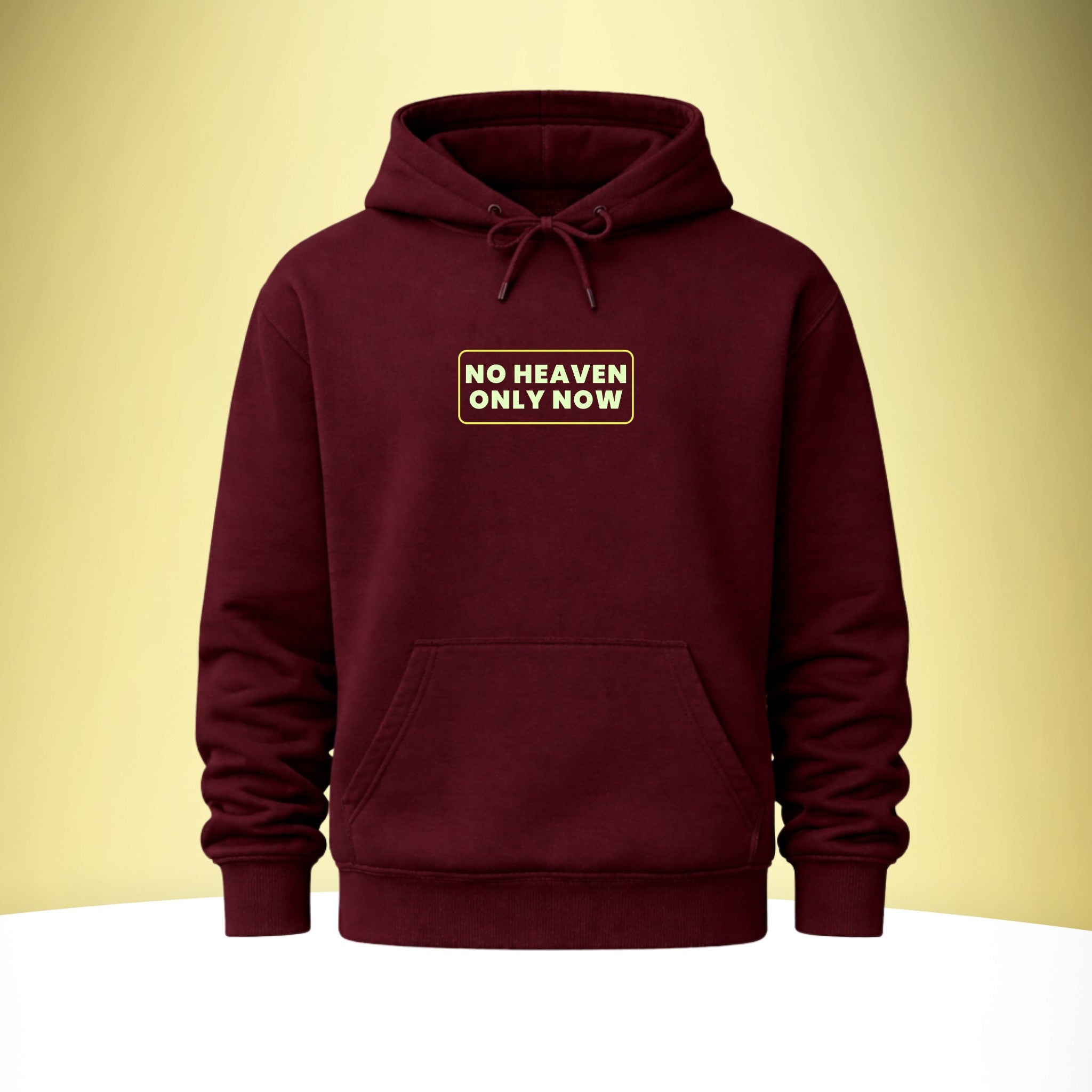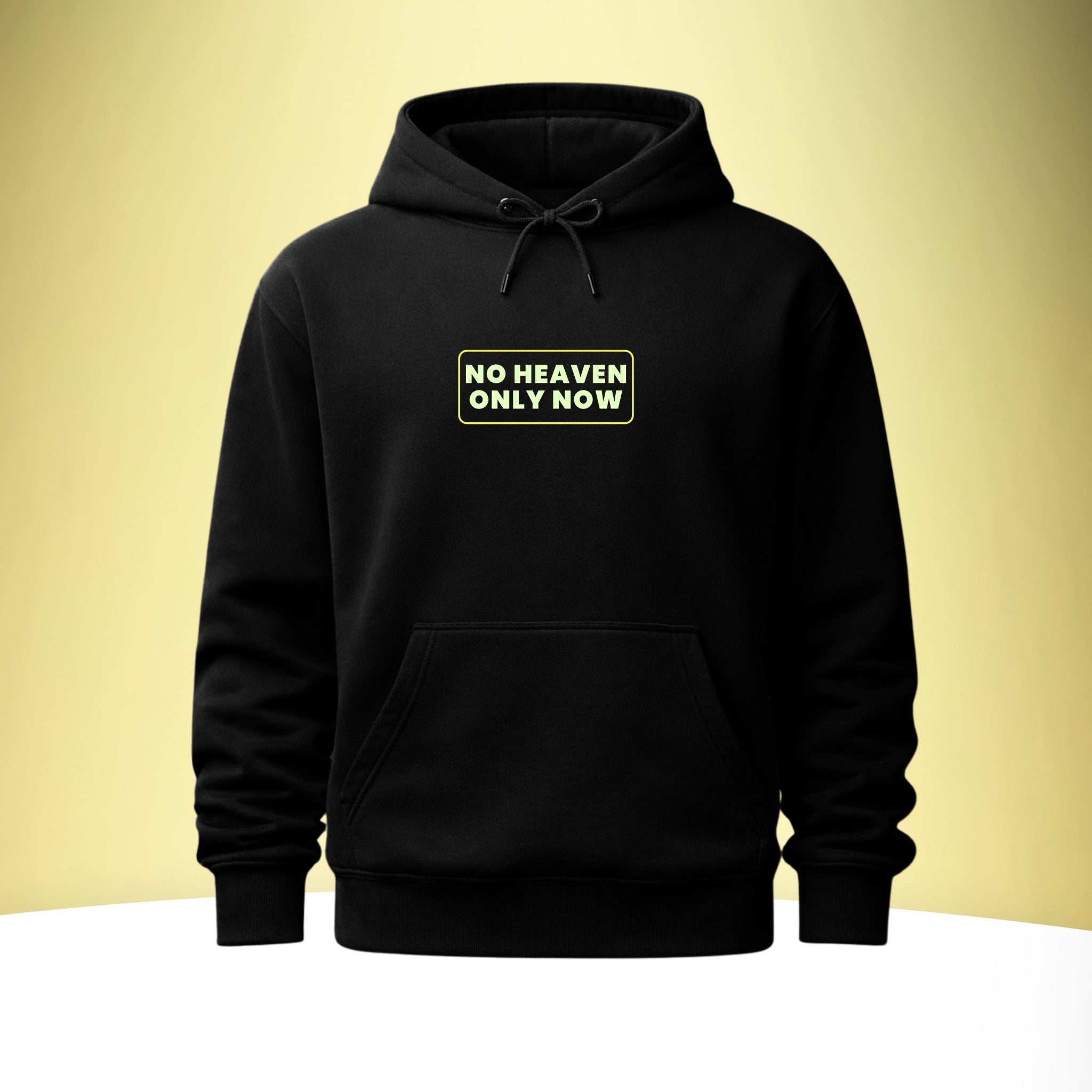 Made with soft cotton fleece, this regular-fit hoodie delivers warm comfort for everyday winter wear. The front message, No Heaven Only Now, keeps you grounded, while the back artwork celebrates clarity and the power of shaping your life in the present moment.