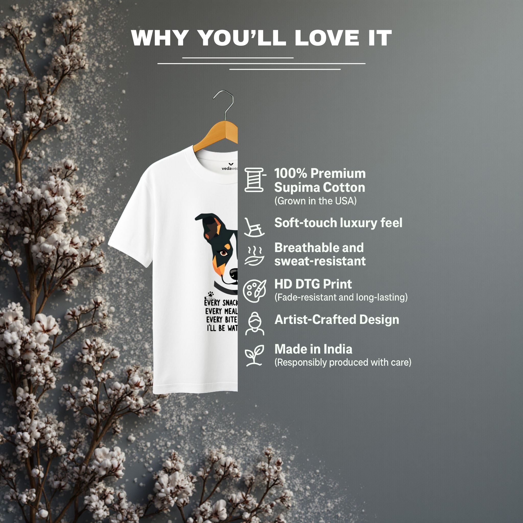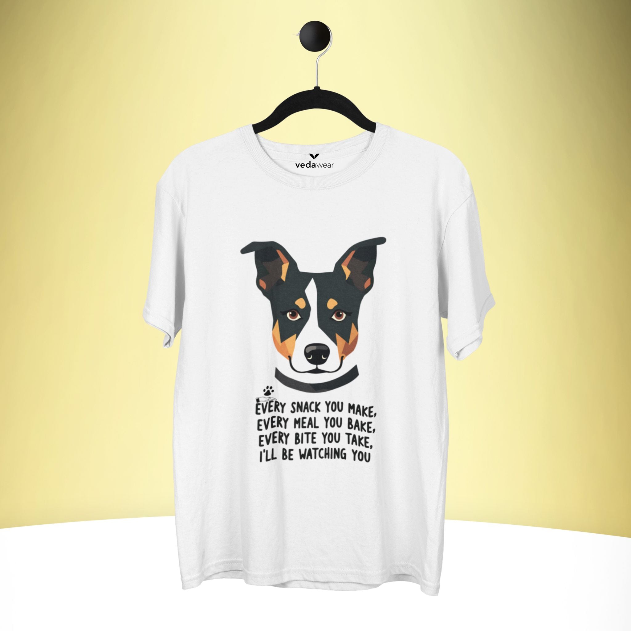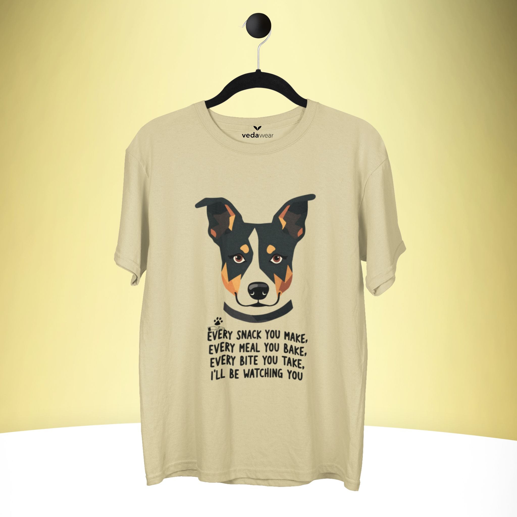 The “Every Snack You Make” premium tee by Vedawear blends humor and canine loyalty into one deliciously relatable design. Featuring the classic parody line: