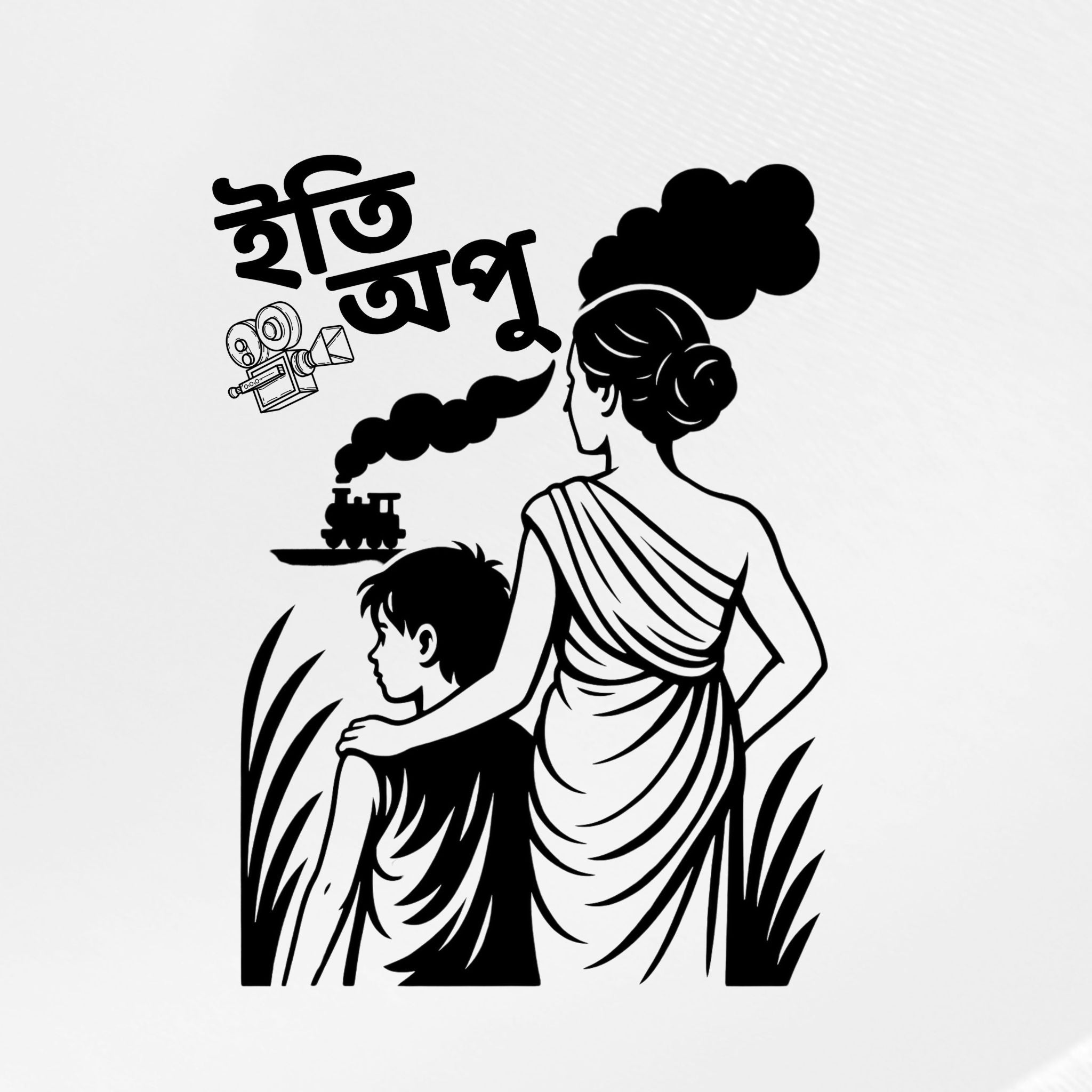 Drawn in monochrome line art, the design is deeply influenced by the emotional minimalism of Pather Panchali. The faceless characters allow anyone to see their own memory in the scene. The rising smoke shaping the handwritten Bengali text adds poetic visual flow.