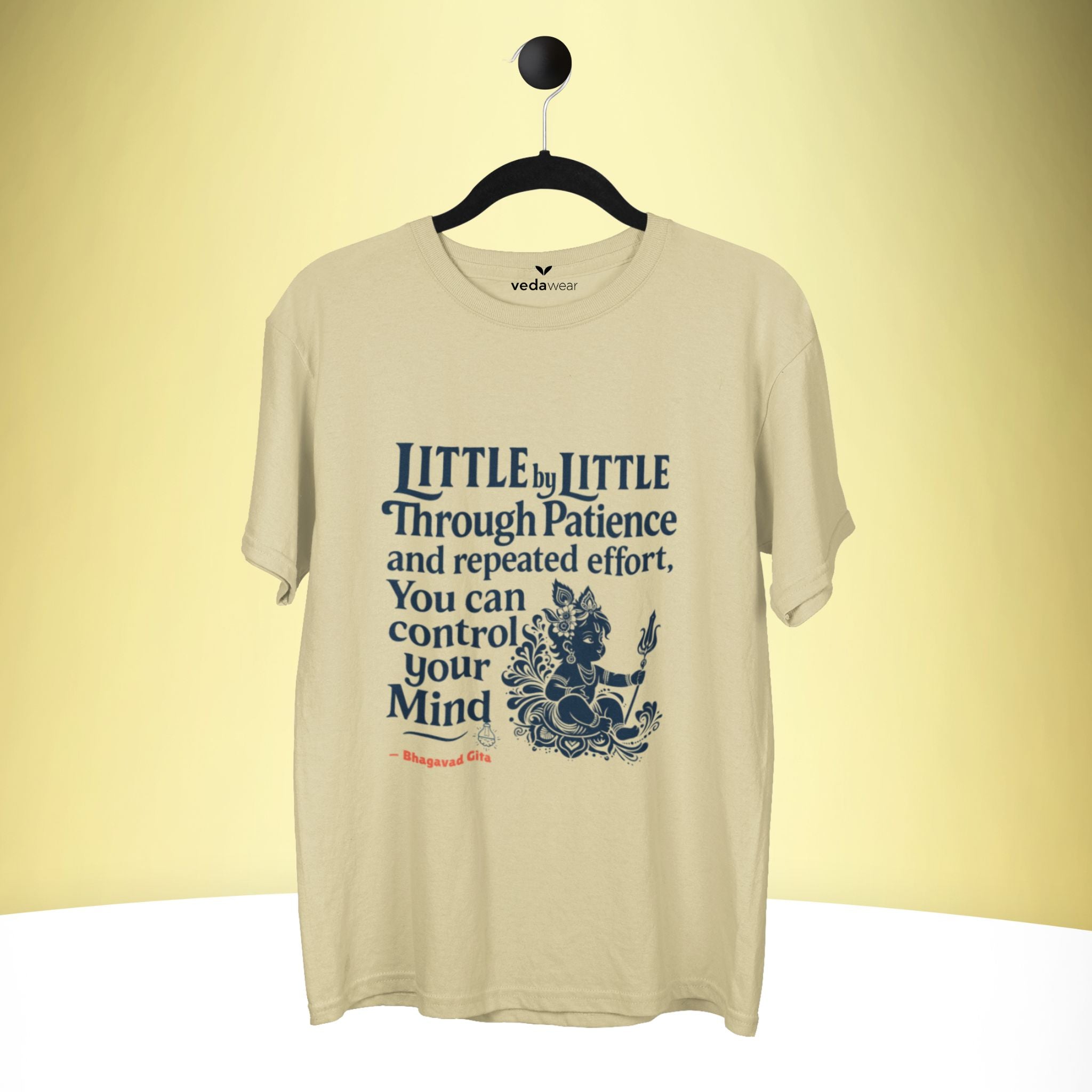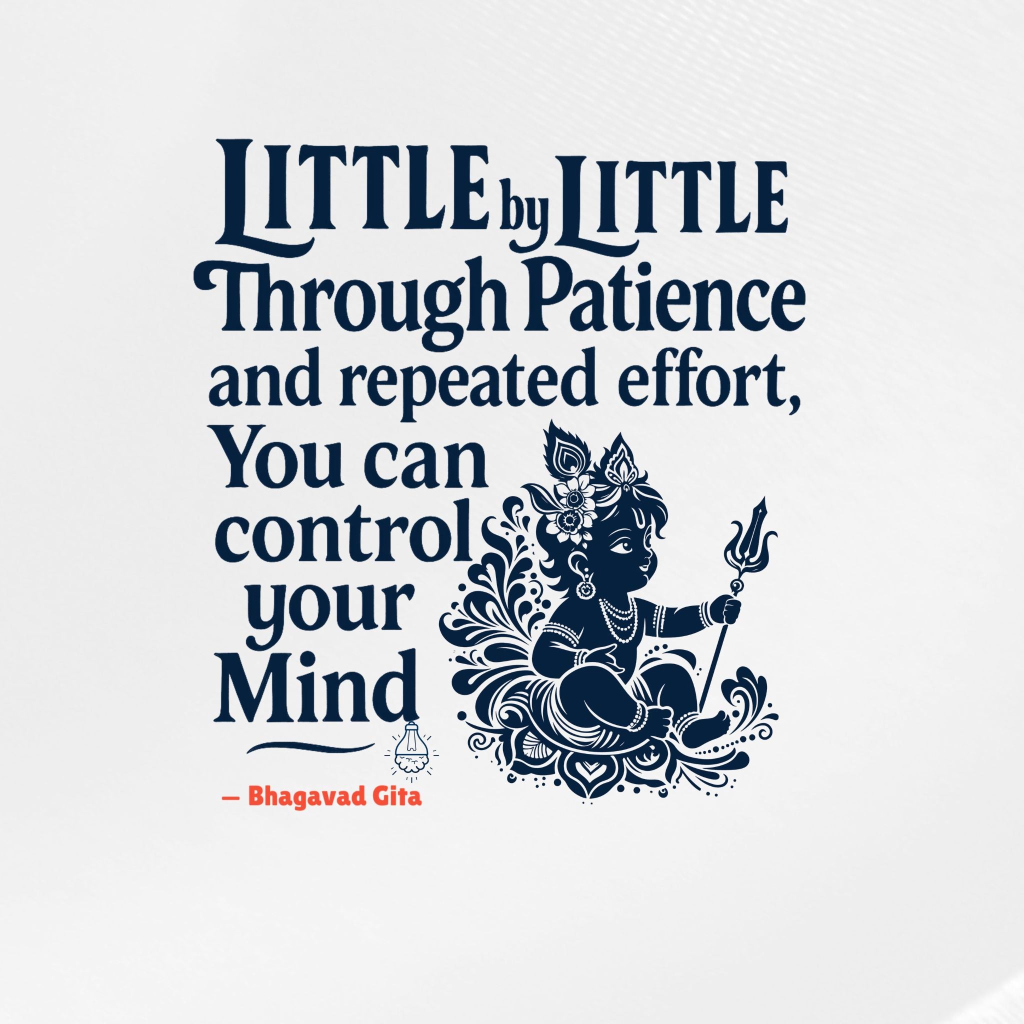 This powerful teaching from the Bhagavad Gita comes alive in our Little by Little Premium Tee. Designed for modern seekers who walk the path of inner mastery, this T-shirt embodies the spirit of discipline, mindfulness, and devotion.