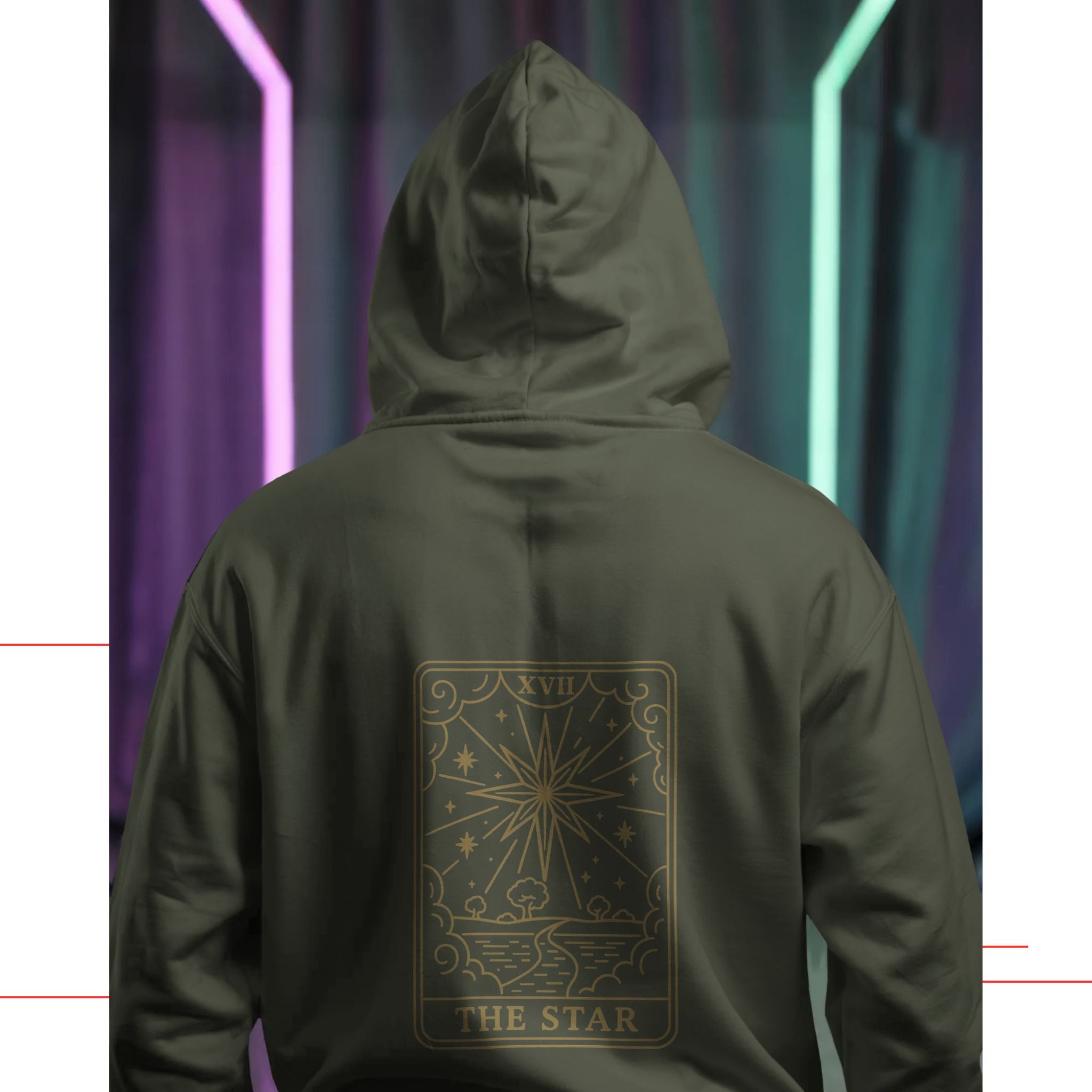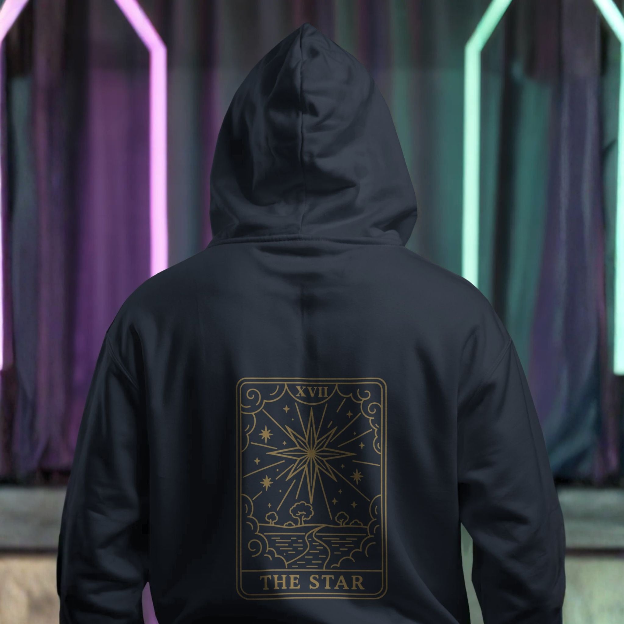 The Star – Tarot Protection Hoodie is inspired by Major Arcana XVII, symbolising hope, emotional healing, and clarity after difficult phases. In tarot philosophy, The Star restores calm, confidence, and trust in one’s path.
